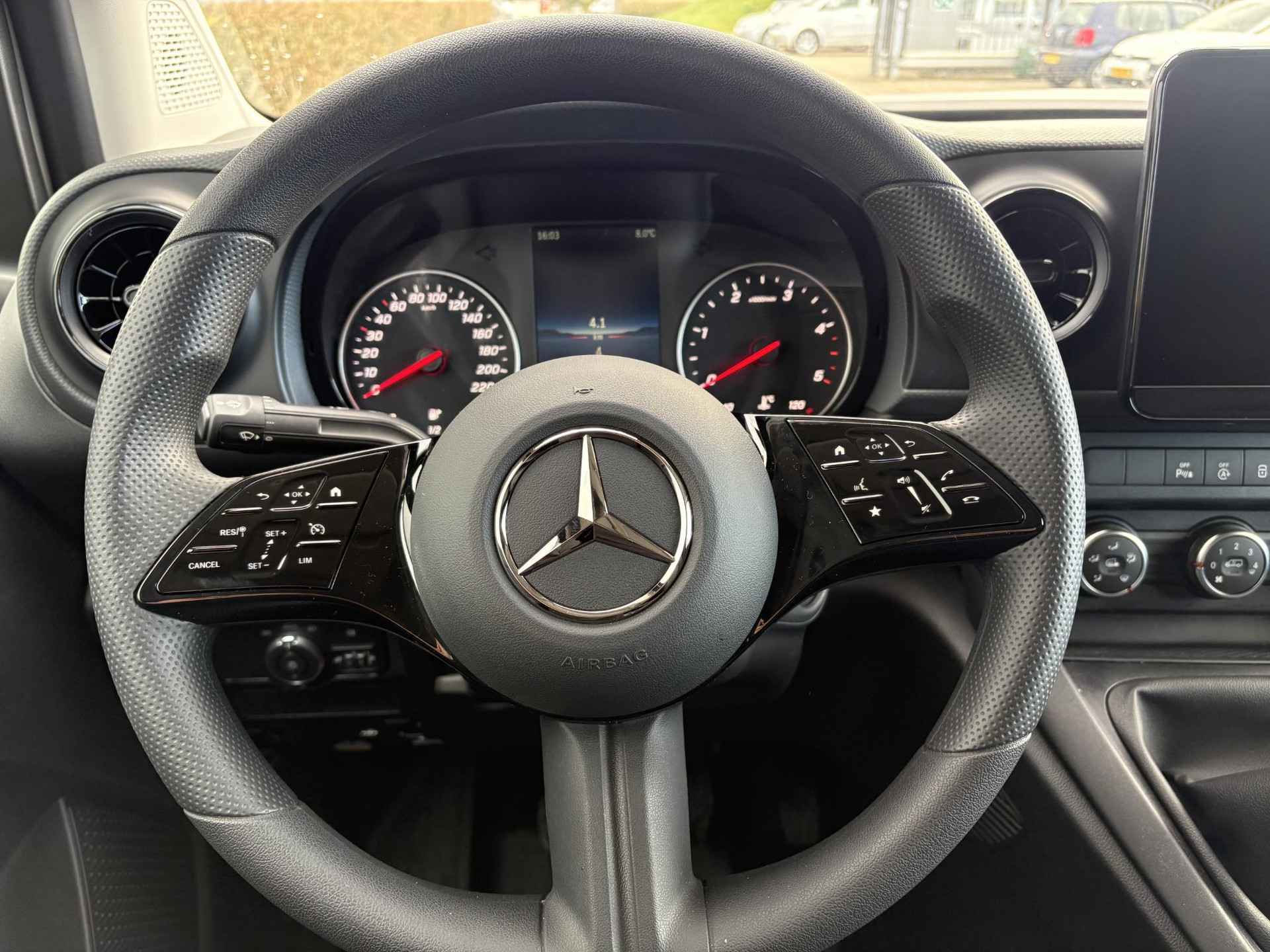 Aan boord van deze Mercedes-Benz houden verschillende geavanceerde systemen voor u de weg in de gaten. Ze waarschuwen u voor noodsituaties en kunnen in een aantal gevallen ook zelf ingrijpen. Wat deze auto ook kan, is lezen. Hij 'leest' voor u de verkeersborden tijdens de rit en attendeert u erop door ze op het dashboard te projecteren. Deze Mercedes-Benz Citan is ook behulpzaam als het gaat om een rechte koers. Het Lane-keeping systeem signaleert en corrigeert als u onbedoeld de rijstrooklijnen dreigt te overschrijden. Om te voorkomen dat u tijdens lange ritten achter het stuur in slaap valt, is deze auto voorzien van vermoeidheidsherkenning. U bent mede dankzij hill hold functie, autonoom remsysteem en bandenspanningcontrolesysteem steeds veilig onderweg.